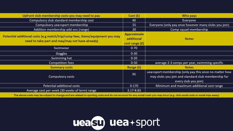Who Are We... Why Choose Us? We are a swimming & Waterpolo club which aims to cater for all - whether you are highly competitive or a keep-fit swimmer! Looking for a new sport to try at Uni? UEA Swimming & Water Polo is the one for you! We pride ourselves on being a very welcoming, friendly, and inclusive club with lots of opportunities to match. We are a friendly, inclusive, and hard-working team that is rapidly becoming one of the most popular sports clubs on campus.  All our training takes place at the UEA SportsPark which has excellent facilities. The majority of our swimmers join us at the beginning of the year after visiting our stall at the UEA Sports Fayre but we regularly welcome new members all year round. Should you wish to join or have any queries about what we can offer you, please do get in touch by dropping us an email. We are always happy to help!
